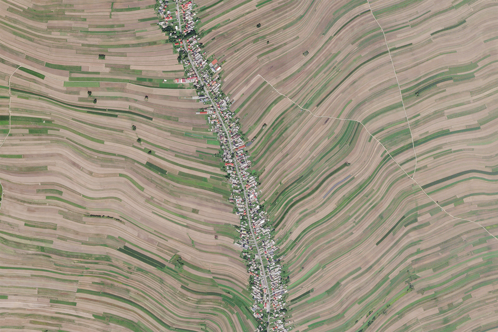 Die folgende Satellitenaufnahme vom 25.8.2022 entstammt der Satellitenkonstellation SkySat der Fa. Planet. Dargestellt ist das Dorf Sułoszowa bei Krakau im Süden Polens. Das Dorf gruppiert sich um eine einzige Straße, die mit rund 9 km eine der längsten in Polen ist.