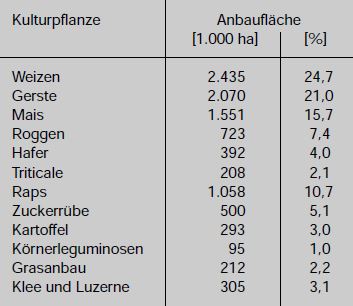 Anbaufläche wichtiger Kulturpflanzenarten in Deutschland 1994