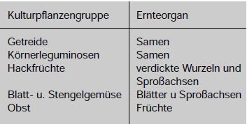 Universell anwendbare Einteilung der Kulturpflanzen mit den Ernteorganen als Kriterium
