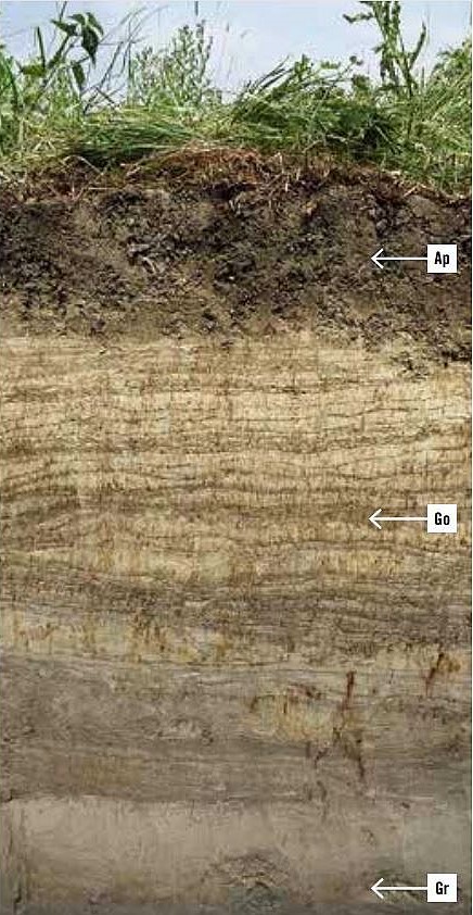 Go Bodenbereich mit rostroten Flecken und jahreszeitlich schwankendem Wasserstand